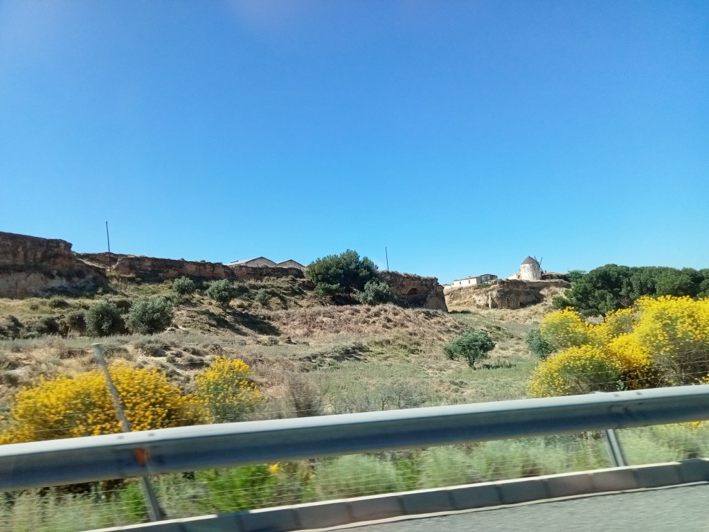 Por el camino surgieron dos aspectos, dicen que en España no hay suficientes casas para que mucha más gente las habite de forma normal, pues uno cuando sale de Madrid le da la sensación de que esa parte que no es de regadío ni agricultora, etc, esa parte que es campo sin definir podría servir para construir más casas.