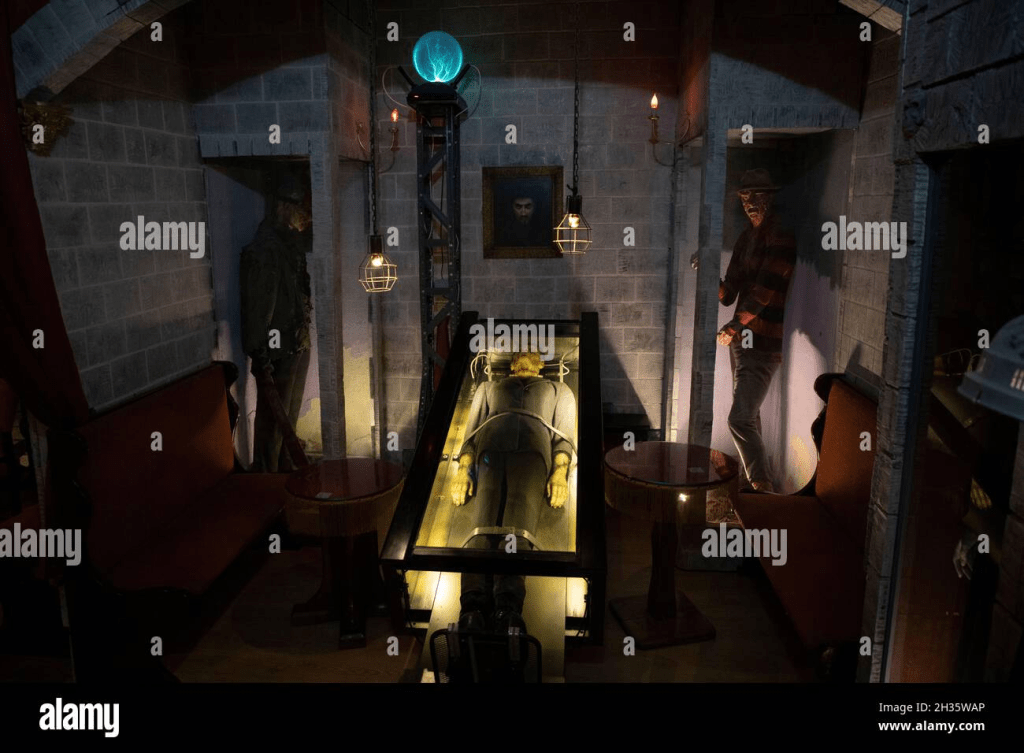 La decoración del lugar, en forma de mazmorra, y la mortecina iluminación contribuían a reforzar el carácter opresivo de este. Caminé asustado por varias estancias, pero solo encontraba a más seres terroríficos.