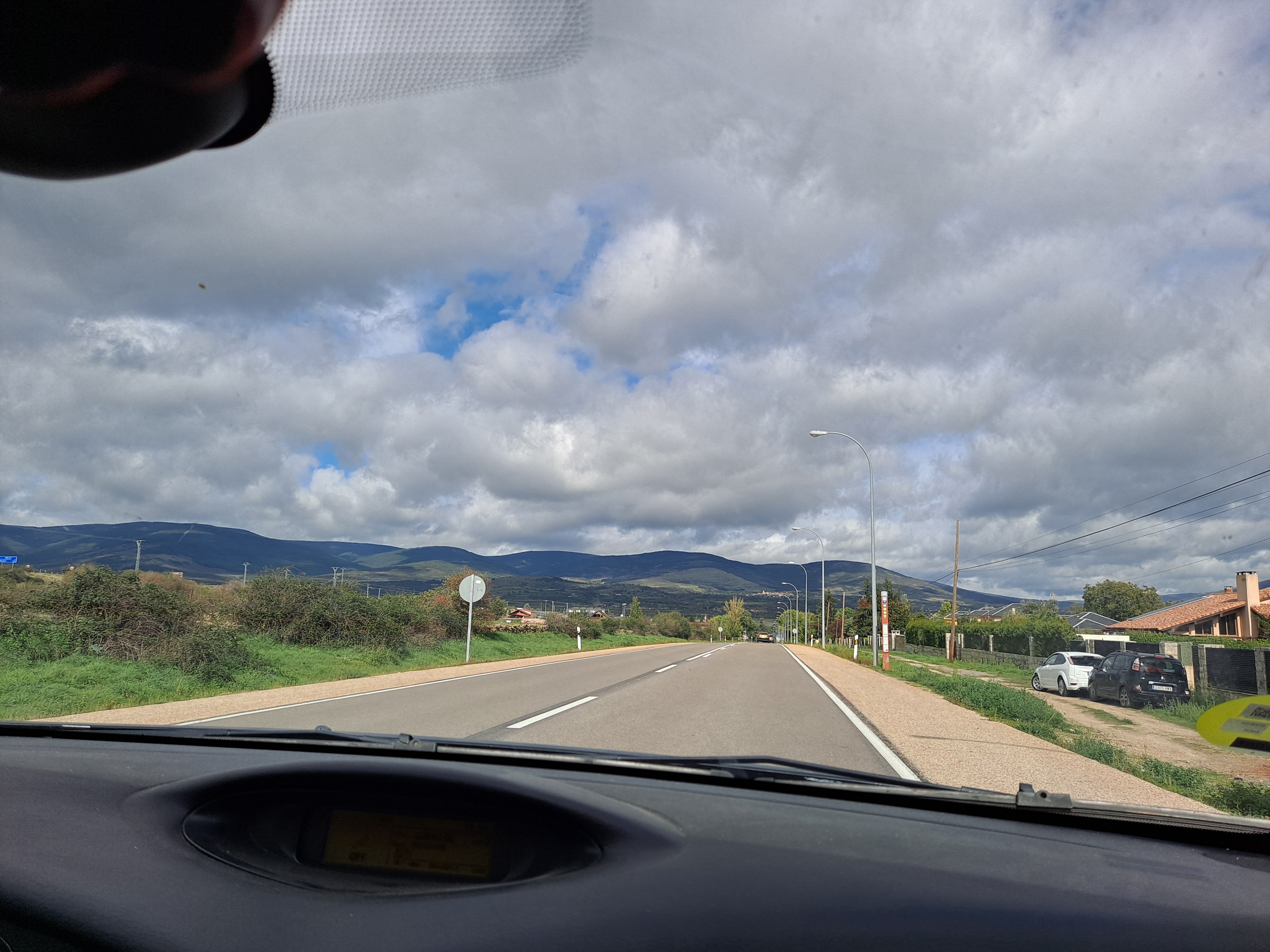 Escuchando música, con un manto de nubes bien formadas por las que quería asomarse el sol, y se colaban unos rayos de luz aún en ese cielo despejado.